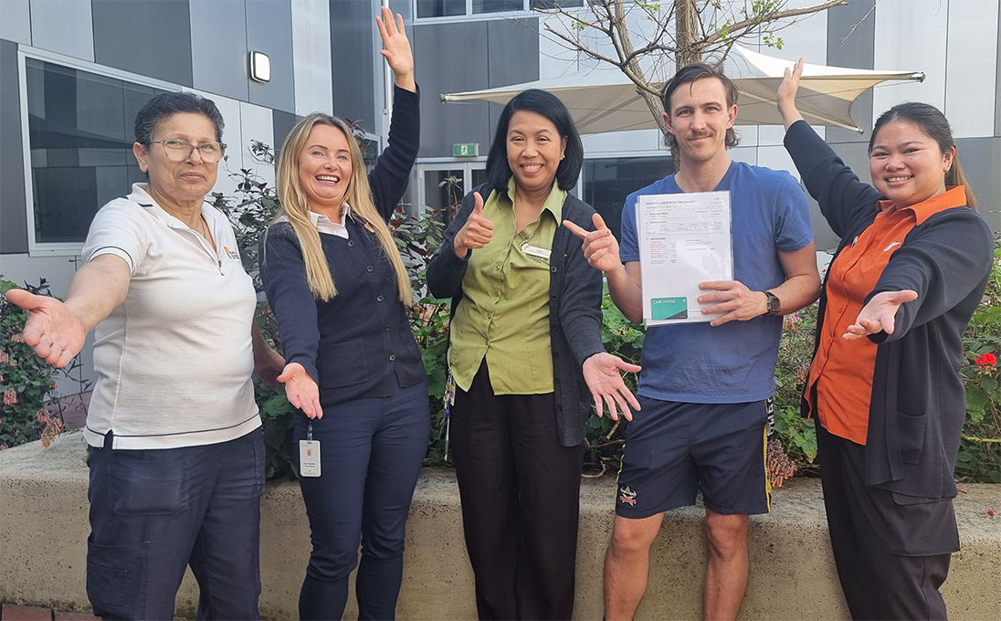 Royal Rehab Ryde Brain Injury Unit nurses and social worker with client Rob at his Discharge Ceremony.